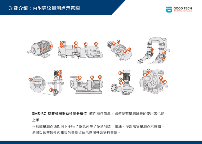 内建故障特征频谱&设备量测点位示意图,即使没有专业背景的新手用户,也能上手,轻松执行旋转机械的检测分析。