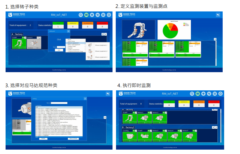 转子健康品质,监测系统-网络版,监测关键设备类转子,转子品质量测,振动异常,特征诊断,预防设备提早老化,减少场域生产与维运问题,确保产线维持产能与稳定度。