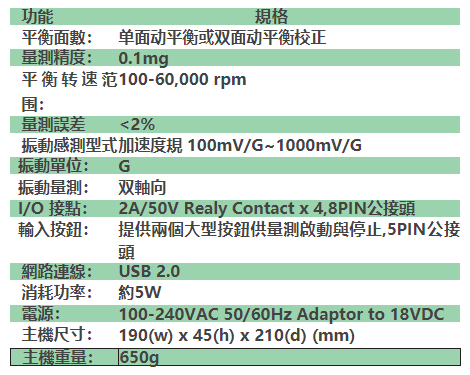 振动谐波测量、振动频段测量、使用各频道资料同步测量,测量频宽可设定量测资料可储存、可设定比较值做 QC判定USB传输