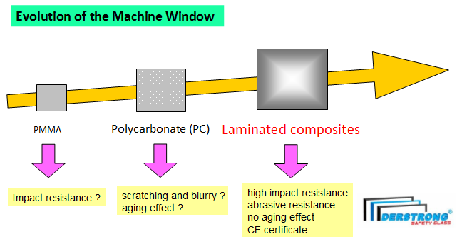 藉由整合玻璃及PC板(Polycarbonate sheet)二者的优点的工具机安全窗。