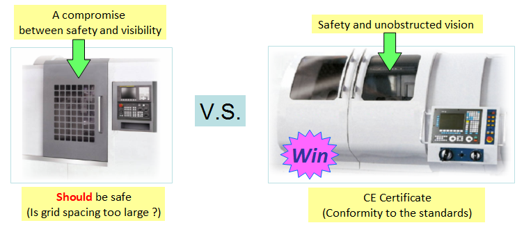 本公司提供符合CE规范EN ISO 23125 (原 EN-12415) & EN ISO 16090-1 (原 EN 12417)的高质量的工具机安全视窗,